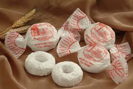 If you feel like imbibing your wine in a non-alcoholic form, there are roscos de vino. These look like little hard doughnuts. They're made with flour, wine, sugar, olive oil, lemon peel, and sesame seeds. I suppose these are the least fattening Christmas objects, mostly like cookies. I have seen that they are of Moorish origin, like so many Spanish sweets, but I tend to think they've been modified, just like the mantecados. Either that, or there was an excess of wine one year and someone decided to experiment.